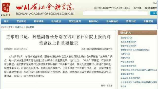 王 東 明 書(shū) 記 、鐘 勉 副 省 長(zhǎng) 分 別 在 四 川 省 社 科 院 上 報(bào) 的 對(duì) 策 建 議 上 作 重 要 批 示