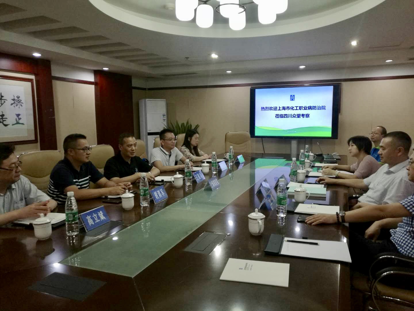 2018年7月12日下午,上海市化工職業(yè)病防治院院長、院黨委書記、主任醫(yī)師王祖兵一行到四川眾望考察學習,四川眾望公司總經(jīng)理潘祖高對王院長一行熱情接待并參觀公司,對公司的歷程、發(fā)展理念以及“并聯(lián)云平臺”的建設(shè)情況進行了詳細介紹。